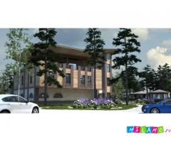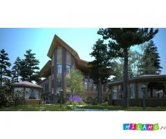 В районе Приморского шоссе, недалеко от береговой линии Финского залива в лесном массиве будет возведено трех этажное здание ресторанного комплекса. Разработку и согласование проектной документации выполнили специалисты Института строительного проектирования ГЕОДИЗАЙН. Свободные планировки помещений первого и второго этажа позволяют рационально разместить холл и гардероб для посетителей, банкетные залы и бары, а также административные и подсобные помещения. Третий этаж полностью отдан под чайную и открытую террасу. В архитектурных решениях фасада использованы традиционные материалы в виде натурального камня и дерева. На территории комплекса будет размещена удобная открытая автомобильная стоянка, беседки и пешеходные дорожки. Все решения гармоничны с существующей и проектируемой застройкой территории, а также восхитительным природным ландшафтом.