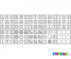 Силиконовые формы состоят из 10-ти блоков по 9 символов каждый (см.картинку). Если не считать казахский и осетинский. блоки, итого получается 8 блоков, среди которые есть смайлы и спец.символы.